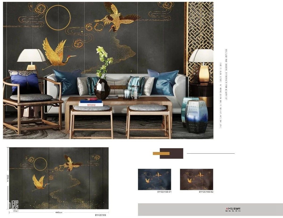 ▲【铂悦】具备集成墙板基本特性的新型墙面装饰材料,集合水晶纱线、蚕丝墙布、玄影布、金属丝、艺术墙纸、油画布的等多类型品质的天然材质,通过多种工艺进行多样化塑造空间效果。