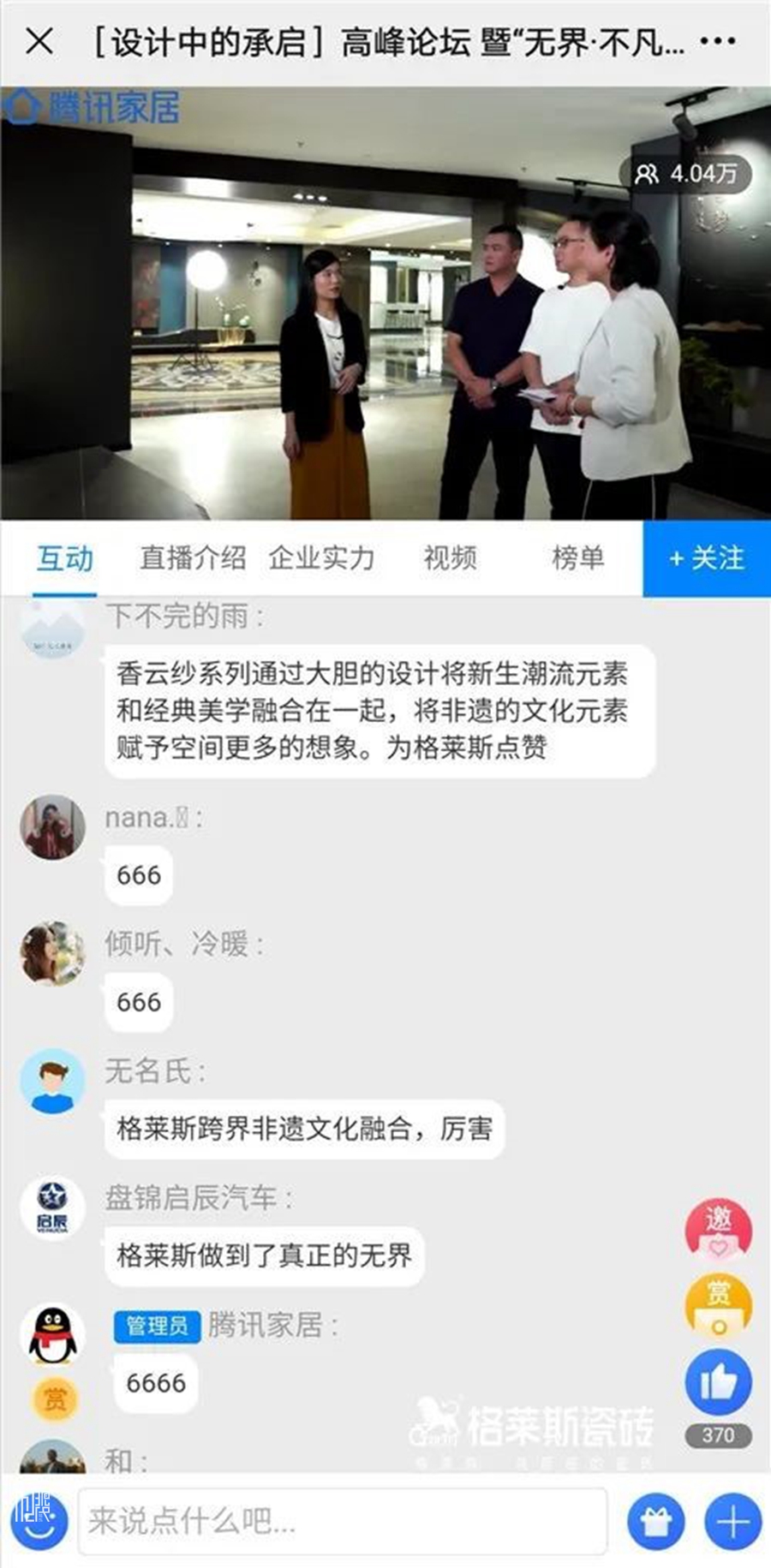 伴随着一年一度818品牌日的到来,格莱斯瓷砖于2020年8月18日下午举行【设计中的承启】高峰论坛暨“无界·不凡”格莱斯非遗文化融合计划第二季启动礼。