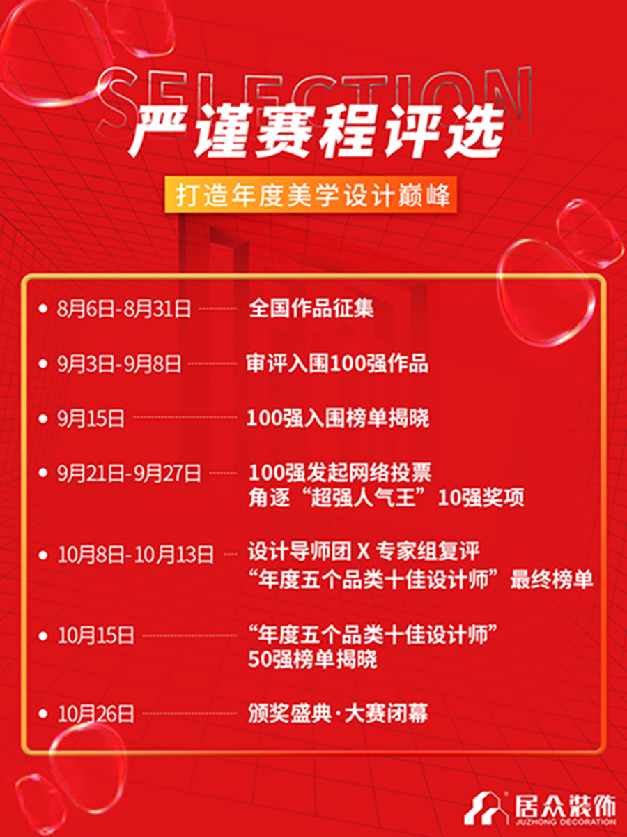 紧跟时代的步伐,激发原创设计实力,共同聚焦对未来人居的设计探索。致力于打造行业内颇具影响力与专业化的设计交流平台,激发无限的设计潜力;现报名通道已正式开启,全国设计师将迎战本次大赛,拭看全国50强席位花落谁手?