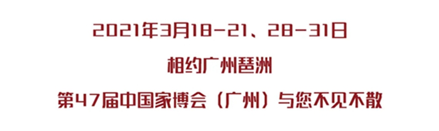 2021年3月18-21日、28-31日,第47届中国家博会(广州)将于广州琶洲盛大举办。75万平方米超大规模,4000多家顶尖品牌强势集结,数十场特展活动重磅上演......