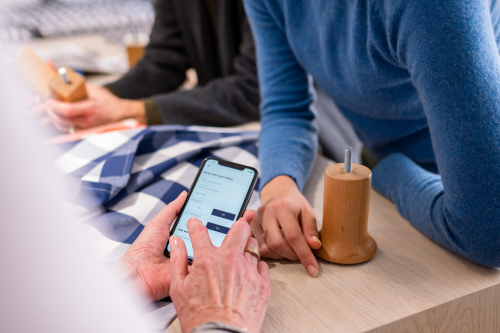 使用iPhone查验品牌的产品信息和配置,海丝腾睡眠专家可以更快、更安全地通过Apple Pay完成订单,同时仍然能够陪伴客户左右。