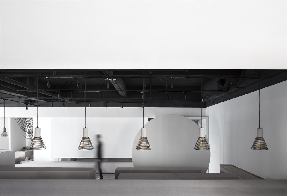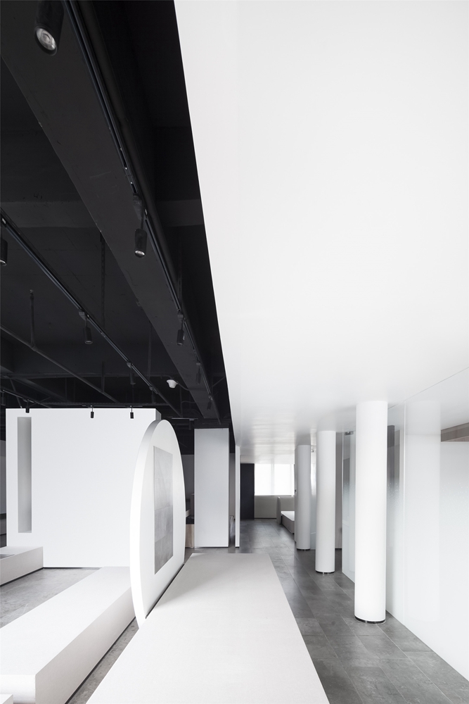 罗丹说,“塑造的时候,千万不要在平面上,而是要在起伏上思考。”在250平米的展示空间内,设计师以雕塑的笔法来塑造。射线、圆柱、方体构成了立体的错层空间,让工作区、办公区、展览区、多功能区既各自独立又互为补充。多功能区以梯级的形式呈现,活化了展览空间的功能属性。它既可以是大讲堂,也可以是以产品的艺术创作过程为主体的视觉展或是与生活美学相关的美物展览。如此,展览陈设区变得愈加多元,实现了的好人记得设计师希望创造不一样的展览体验效果的初衷,让空间设计始终回归到展览空间的本质,达到最大化的共享,激发出富有弹性的全新展览型态。