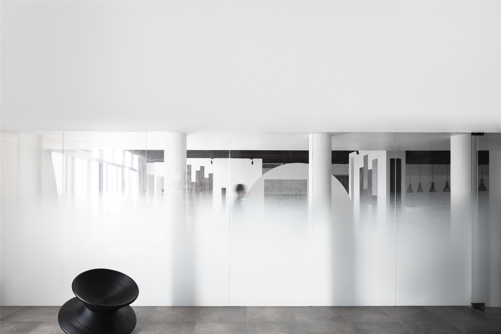 时间静默,空间无言。感四季变迁,光阴流淌,与空间对话,与思考共舞,莫不以人为主角。梵高写道,“每个人的心中都有一团火,路过的人只看到烟”。“火”,从设计层面而言是凝聚的空间思考,是设计内里关系的本质所在。当火变成烟,设计得以外化。本案是一个物料展示空间项目。空间的体验是瞬间的,设计师认为有可能通过设计改变用户的视角,将瞬间的体验变成连贯,丰富、变幻的感受。空间被设定为一张白色画纸,选配物料的过程就像绘画一般,可以调试出不同的可能与惊喜。空间主调选用黑白灰,一如既往的干净,没有多余的色彩。黑色的裸露天花,白色的柱体、界面,灰色的地板,留白愈多,展示的功能就愈为凸显。